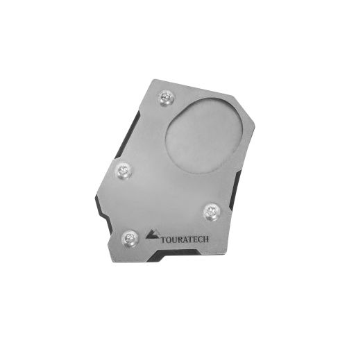 The side stand base extension more than doubles the area of the supporting surface, so you won't find yourself straining to lift the fully laden machine. A mix of stainless steel and black anodised aluminium components ensure the base extension looks good and provide full stability. Securely fixed to the side stand, the base extension is a useful accessory that is always there to save you a lot of hassle and frustration.