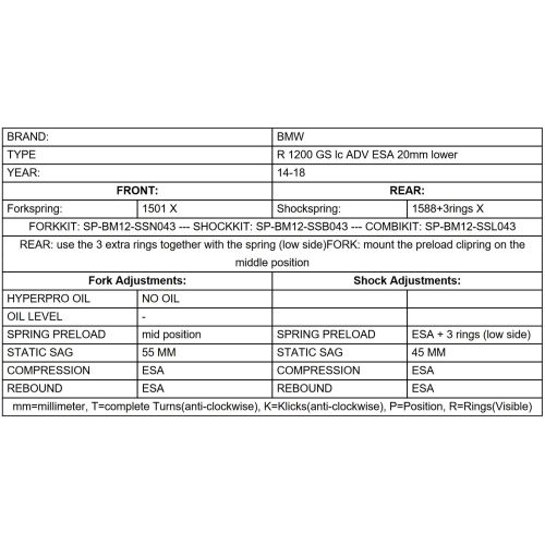 Info: Only fits “BMW R1200GS (LC) Adventure 2014-2018 with BMW Dynamic ESA”