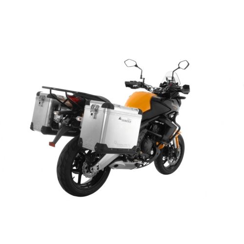 The aluminium pannier system again has a very robust construction. We have tried to bring the pannier racks and the panniers as close as possible to the motorcycle. Numerous tests have already been performed in order to ensure that the entire development satisfies the required demands.