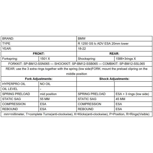Replacement springs Height lowering kit -20mm, for BMW R1250GS Adventure "Original shocks with BMW Dynamic ESA" 2018 - 2024