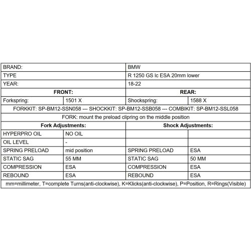 Touratech Suspension lowering kit -20mm for BMW R 1250 GS (LC) ESA (2018-2024)