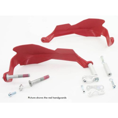 Unlike the original ones these hand protectors are not fitted to the clamps on the control units or brake unit but directly onto the tubular handlebars. This considerably reduces the risk of the hand brake lever mounting breaking off if you fall and thus making it doubtful whether you can continue riding. The hand protector can be combined with various spoilers and then offers optimum protection against wind and weather. A very strong, sturdy construction which has proved itself time and again in many rallies and on other motor cycles.