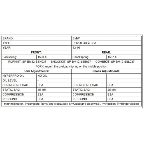 This Set of progressive replacement springs has been designed to match the BMW R1200GS(LC)/R1250GS perfectly, and offer a "tremendous improvement" in response and greater safety in extreme situations. Replacing the front and rear springs will lead to a significant improvement and more riding pleasure with your motorbike.