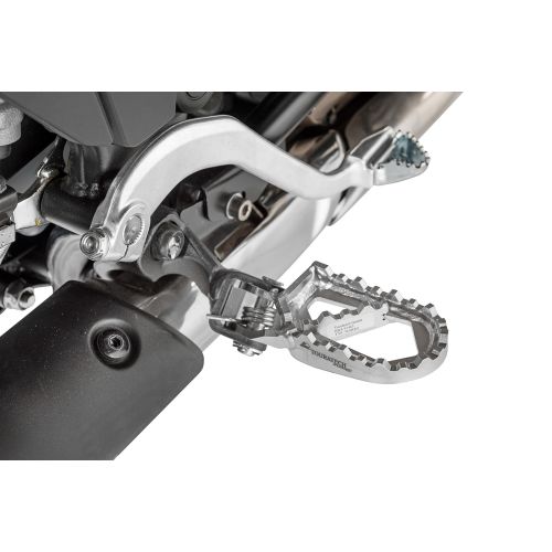 The Touratech Works foot pegs have been specially strengthened at the mounting point, making them significantly less susceptible to impacts. The Works products are an optical highlight as well. Blasted stainless steel with a special laser inscription makes this product really stand out, as well as giving a visual indication of its noble origins in extreme enduro sport.