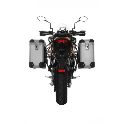 The aluminium pannier system again has a very robust construction. We have tried to bring the pannier racks and the panniers as close as possible to the motorcycle. Numerous tests have already been performed in order to ensure that the entire development satisfies the required demands.