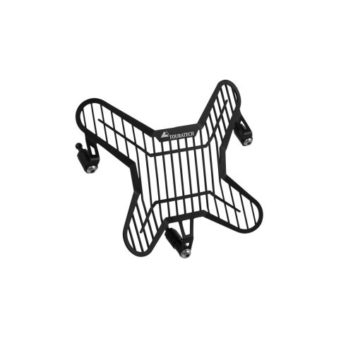 In addition, the headlight protection is equipped with a quick-release fastener. This allows the protective grille to be clipped on and off in seconds. A significant increase in comfort, whether for cleaning the headlight or switching to public roads. Only the holding elements remain firmly screwed and almost invisible on the motorcycle.