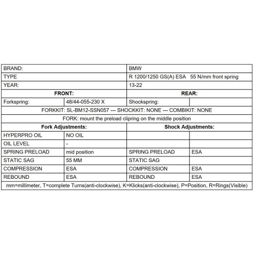 Replacement spring LINEAR / FRONT 55N/mm for BMW R1200GS / R1250GS 2013-2024 "Original BMW shocks with BMW Dynamic ESA".