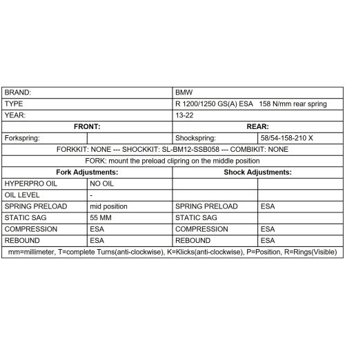 Replacement spring LINEAR / REAR 158N/mm for BMW R1200GS / R1250GS Adventure 2014-2024 "Original BMW shocks with BMW Dynamic ESA".